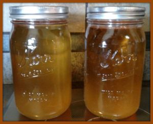 Hot Tallow Hot tallow takes on a golden coulor. It can be strained and poured into mason jars for easy storage.